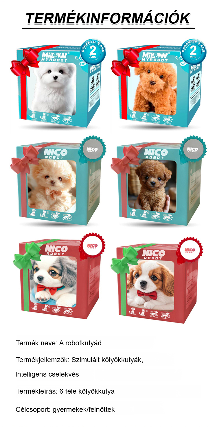 Rövid szőrű robot kutya plüssfigura